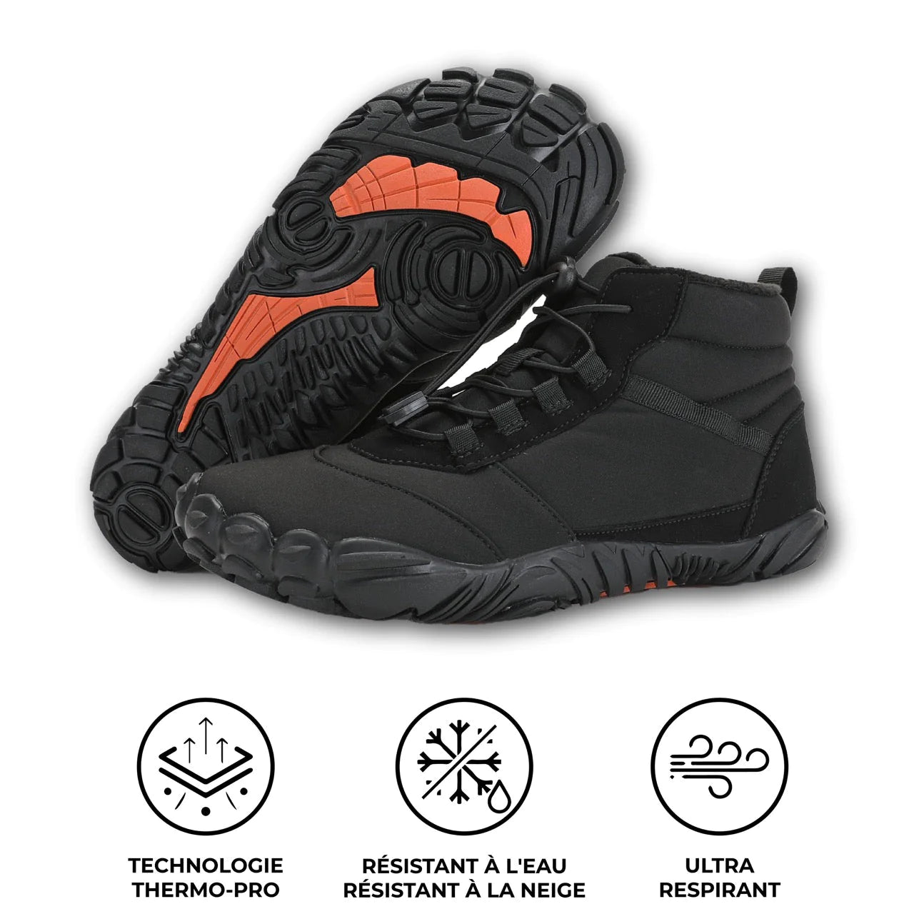 Les chaussures d'hiver classiques sont généralement trop étroites et leurs semelles très rigides. Ce qui procure de fortes douleurs et atrophie nos pieds.
